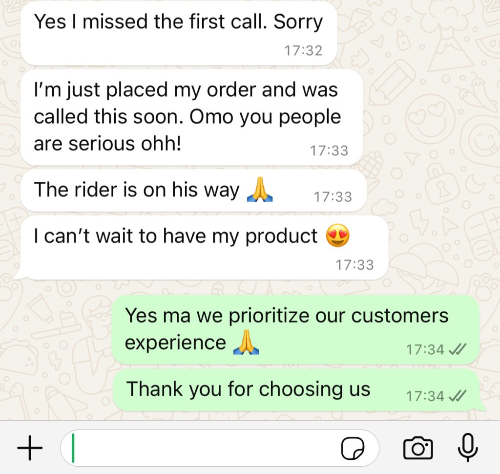 You can send your Name, Address and phone number to the WhatsApp below and you order will be recorded.